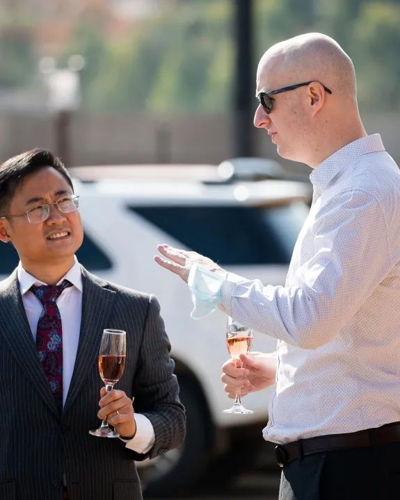 圖2:潘橙(左2)陳國(guó)華(左4)劉玉祥(左1)葉建云(左3)交流