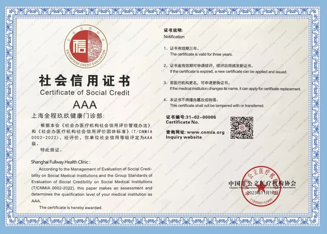近期,上海鵬欣集團(tuán)旗下上海全程玖玖健康門診部接受了中國(guó)非公醫(yī)療機(jī)構(gòu)協(xié)會(huì)評(píng)價(jià)專家組的信用與能力的續(xù)評(píng)考核,收獲了一致認(rèn)可!喜獲中國(guó)非公立醫(yī)療機(jī)構(gòu)協(xié)會(huì)“社會(huì)信用評(píng)價(jià)AAA級(jí)機(jī)構(gòu)”及“醫(yī)療質(zhì)量服務(wù)能力五星級(jí)醫(yī)療機(jī)構(gòu)”兩項(xiàng)殊榮!