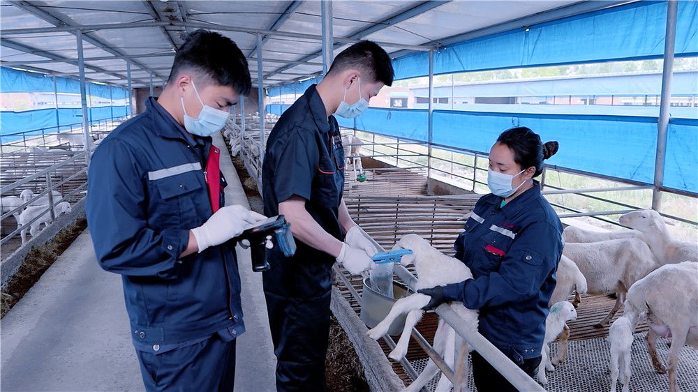 工作人員在給羊崽佩戴電子耳標(biāo),進(jìn)行數(shù)字化管理
